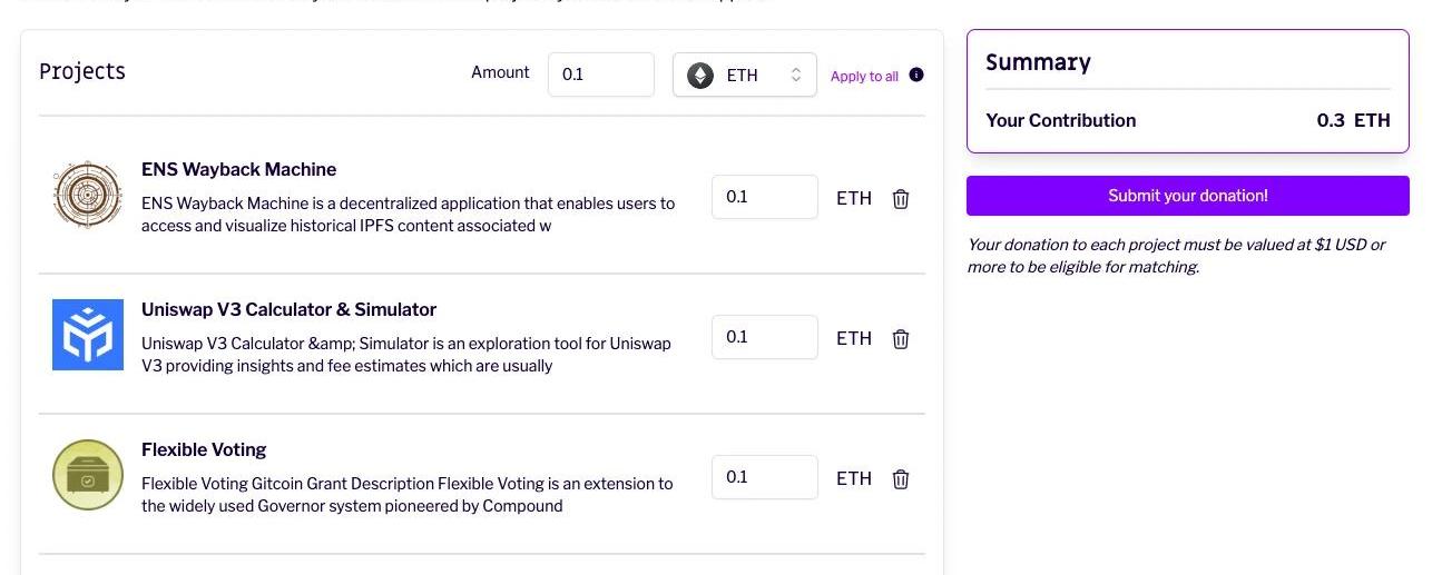 值得一提的是,本次Gitcoin捐贈僅支持以太坊主網,所以gas成本相對較高,建議大家視實際情況決定是否操作。