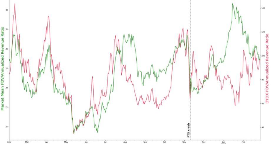 仔細看看GMX和dYdX等領先者的市場表現,似乎對這些項目的未來沒有明顯的熱情增加。他們各自的代幣的價格仍然與FTX崩潰前的倍數相似或更低,最近的倍數增加反映了市場的普遍增長,這表明人們對他們通過指數級增長來超越市場的能力缺乏信心。