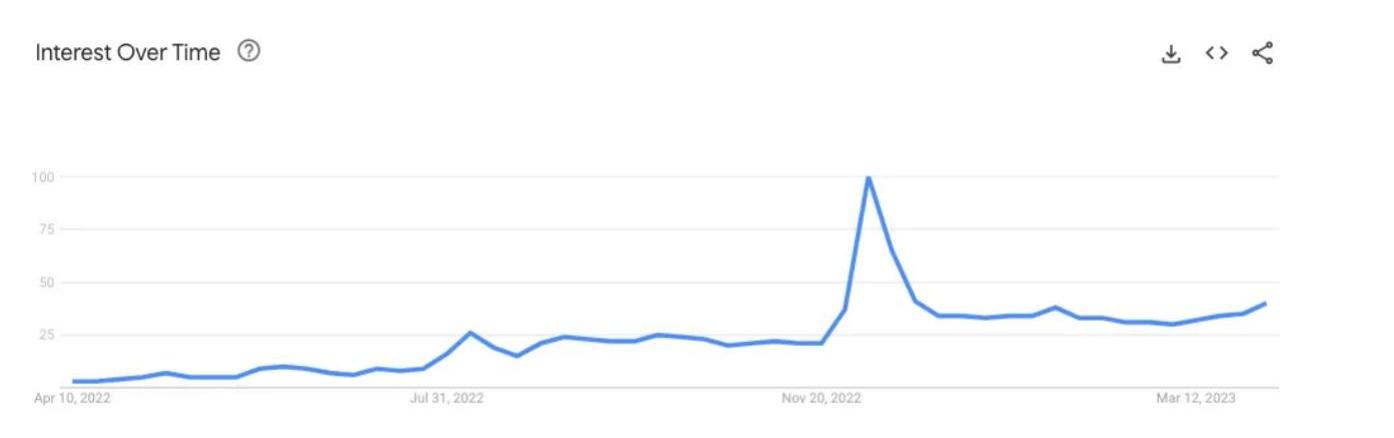 如果你需要任何證據證明人們對AI藝術的興趣日益濃厚,只要看看過去一年谷歌對這個詞的搜索趨勢。相較一年前,人們對AI藝術的興趣上漲13倍,且并沒有放緩的跡象。