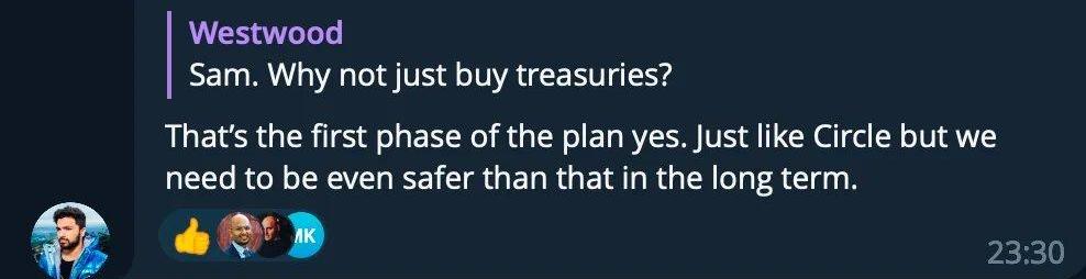 Sam在Frax電報群中提到了不依賴USDC的第一步:Frax可能很快開始直接購買美國國債。