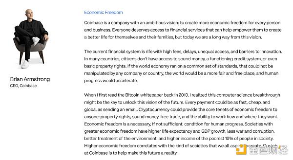 不過Armstrong的介紹中闡述了公司的愿景,很好也很簡潔:通過建立一個安全、可信、易用的平臺,幫助人們進入加密經濟,促進經濟自由。