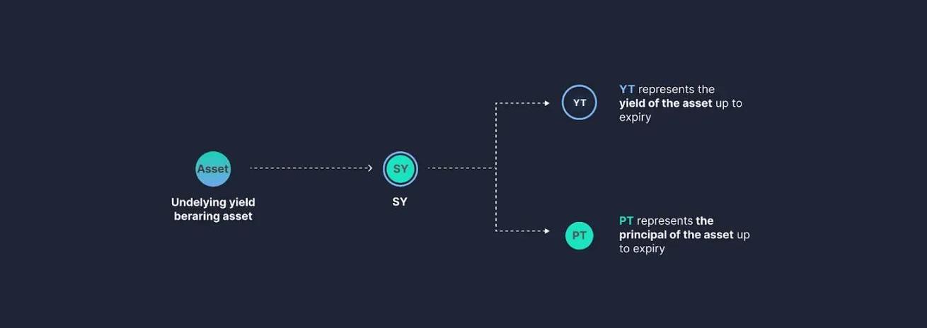 首先,Pendle將產生收益的代幣打包成SY,然后SY被分成本金和收益兩部分,分別是PT和YT,它們分別可以通過定制的V2AMM進行交易。