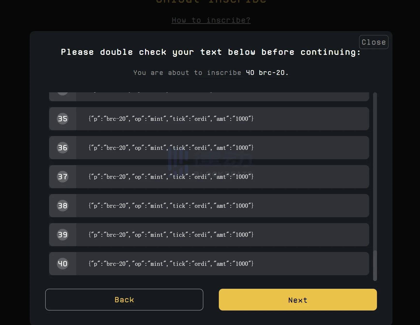 $ordi是第一個被部署的BRC-20Token。通過UniSat的BRC-20搜索功能,可以看到目前已經有23161個與$ordi鑄造相關的銘文。