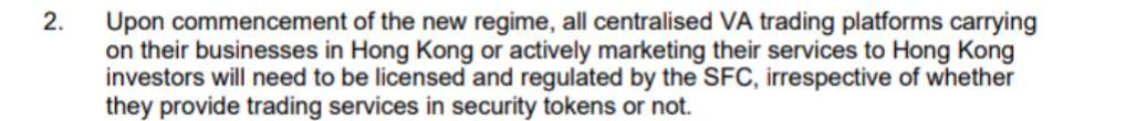 因此,如果你想讓你的交易所在香港提供交易,你就不能向任何用戶提供期貨,甚至是其他國家的用戶,否則你就不符合在香港成為受監管實體的要求。