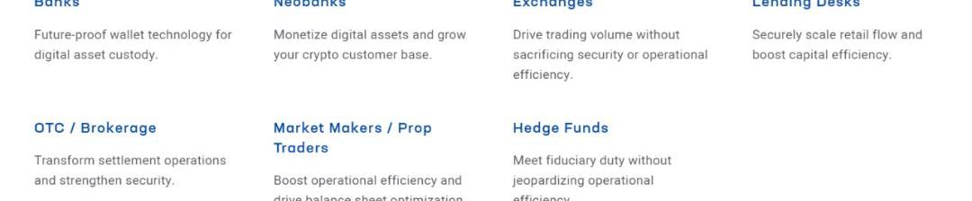 Fireblocks使銀行,金融科技公司,交易所,流動性提供商,OTC和對沖基金能夠安全地管理廣泛產品和服務中的數字資產。