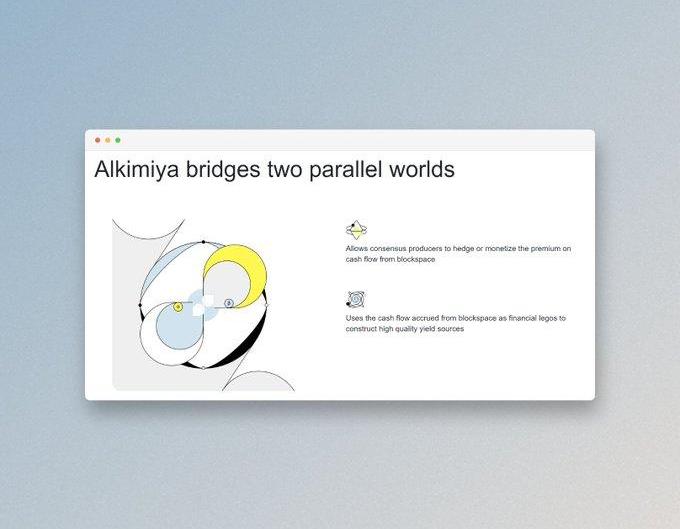 Alkimiya是一種無需許可的協議,它使更廣泛的DeFi世界可以訪問區塊空間的經濟學。作為DeFi用戶,你可以訪問哈希算力互換以及使用哈希算力作為基礎收益來源的結構化產品。