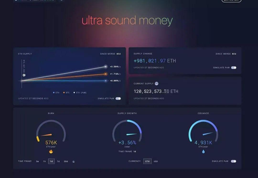圖3:在工作量證明中模擬ETH發行和銷毀的儀表板;資料來源:截至2022年12月的Ultrasound.money數據