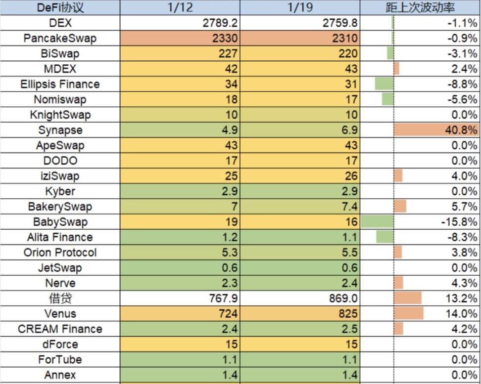 連續三周出現TVL增長,本周TVL增長2.26B,增長幅度達5.3%,對比行情端漲幅依舊較低,各鏈占比未出現較大變化,縱觀協議,短期內主流協議漲幅較大,小協議漲幅較小,資金繼續向頭部協議集中,在本輪反彈中漲幅較低的協議將會逐漸失去掌控力。