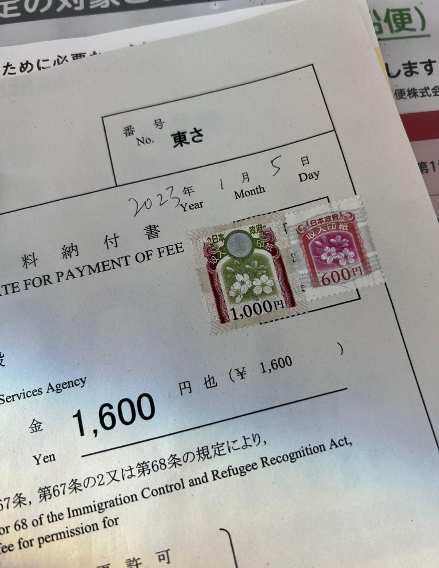 中間一個小插曲就是繳費,我以為直接付錢就好了,但是其實是要去郵局去買「印紙」貼上才可以,辦理的地方不收現金的。