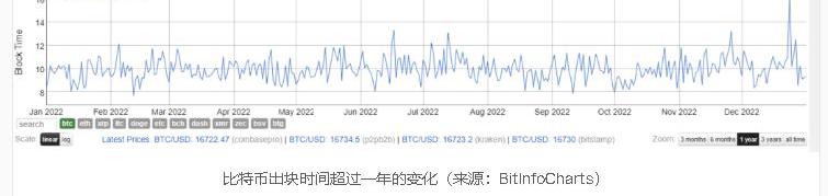 然而,盡管出現了嚴重的市場低迷,包括礦工投降和強制清算、defi平臺被黑客攻擊,但比特幣在2022年基本上保持了一致的10分鐘出塊時間。