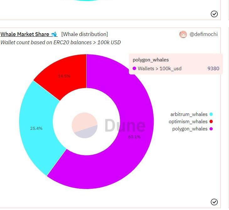 即使對于海豚,Arbitrum也擁有相當可觀的20%,而Optimism僅僅擁有12%。