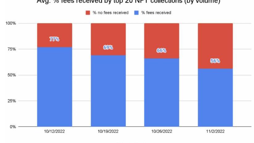 其實當NFT標準于2018年創建時,創作者費用并不存在。OpenSea在最初的時候就希望更多的創作者可以進入這個領域。但過去幾個月以來,在一些可以選擇創作者費用的市場上,可以了解到自愿的創作者費用支付率下降到不足20%。而在其他市場上,甚至很多人選擇根本不支付創作者費用。