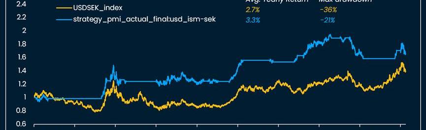 FigureA.6.StrategyReturnIndex(USDISMactualfinalPMI-SEKactualfinalPMI)vsUSDSEK,index=1onJune2005