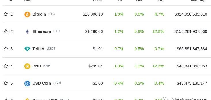 頂級加密貨幣市值,來自CoinGecko的數據,2022-11-30,前六名中的三個是中心化穩定幣