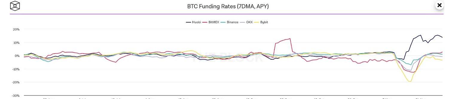 在整個11月,TheBlock追蹤的所有主要交易所的BTC資金利率基本上都是負數。一般來說,正的資金利率意味著正的價格行為,而負的資金利率意味著負的價格行為。