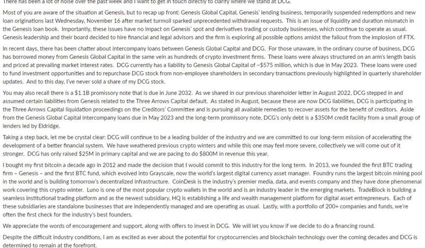 這些都是Genesis的問題,不是DCG或Grayscale的問題。這種信用傳染病是如何轉移到第四階段的信用癌癥并對整個G-Unit造成生命威脅的?Shillbert先生在最近的更新中提供了一些線索。