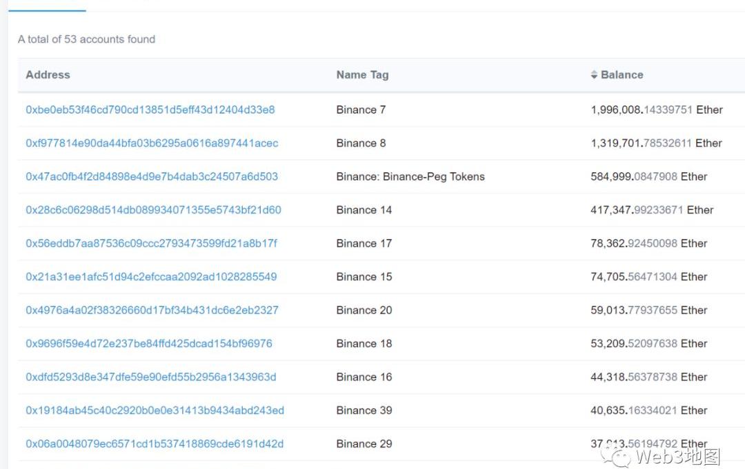 進入https://etherscan.io/accounts/label/binance,查看幣安的以太坊錢包列表。