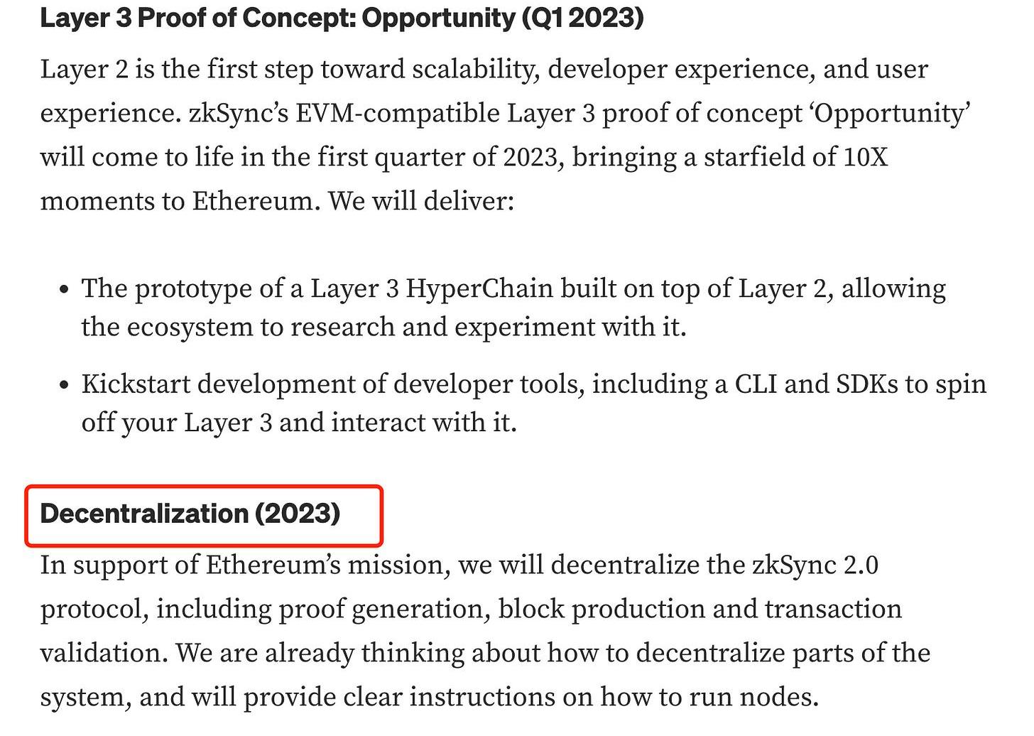 在最新發布的官方文章中,zkSync將在2023年Q1后開始進行去中心化的權力下放,這也是市場預測的最接近發幣的時間。
