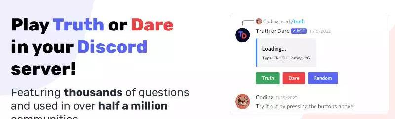 TruthorDare?是在Discord服務器中玩真心話大冒險,用于社區活躍,讓社區成員互相互動起來。