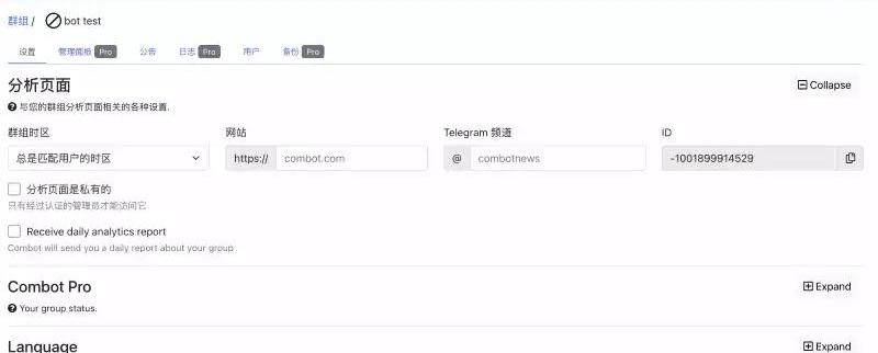 相比于Rose只能在電報里進行設置,Combot能讓你在獨立的后臺管理自己的電報社區,并提供相對友好的操作界面,同時Combot還能提供群組的用戶數據分析,為社區成員配置積分、了解活躍度等。