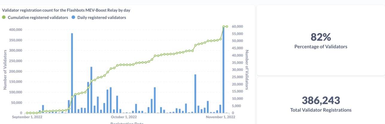 這里的意圖不同,但結果相似:Flashbots目前擁有超過80%的網絡主導地位,并且正在定價競爭。