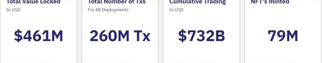 9%——生態開發者,使用者和社區。包括在6月1日前與StarkEx有過交互的部分用戶。9%——社區退款——StarkNet代幣的退款,以部分支付從以太坊加入StarkNet的成本。12%——資助用于開發、測試、部署和維護StarkNet協議的研究者和工作者。10%——戰略儲備,用于資助符合基金會使命的生態系統活動。2%——捐贈給相關領域杰出的的機構和組織,如大學、非政府組織等,由StarkNet代幣持有者和基金會決定。8.1%未分配——以進一步支持StarkNet社區,具體方式由社區決定。考慮到去中心化生態系統的慣例分配和社區的長期利益,給投資者和核心貢獻者的49.9%將有4年的鎖定期,并且將會采用1年的Cliff和線性的方式釋放代幣。從代幣分配可以看出,StarkNet代幣獎勵優先考慮核心基礎設施和dApp的開發人員,而較少傾向于普通用戶。運營數據