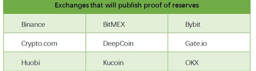 FTX事件的起因是其挪用了用戶資產,最大后果是引發了加密貨幣投資者對于交易所的普遍性的不信任。其他交易所受到牽連,出現了不同程度擠兌的情況。為了應對這次危機,以Binance和Huobi為主的頭部交易所紛紛站出來宣布未來將通過ProofofReserve的方式證明用戶的資產安全,并形成信息公開制度。