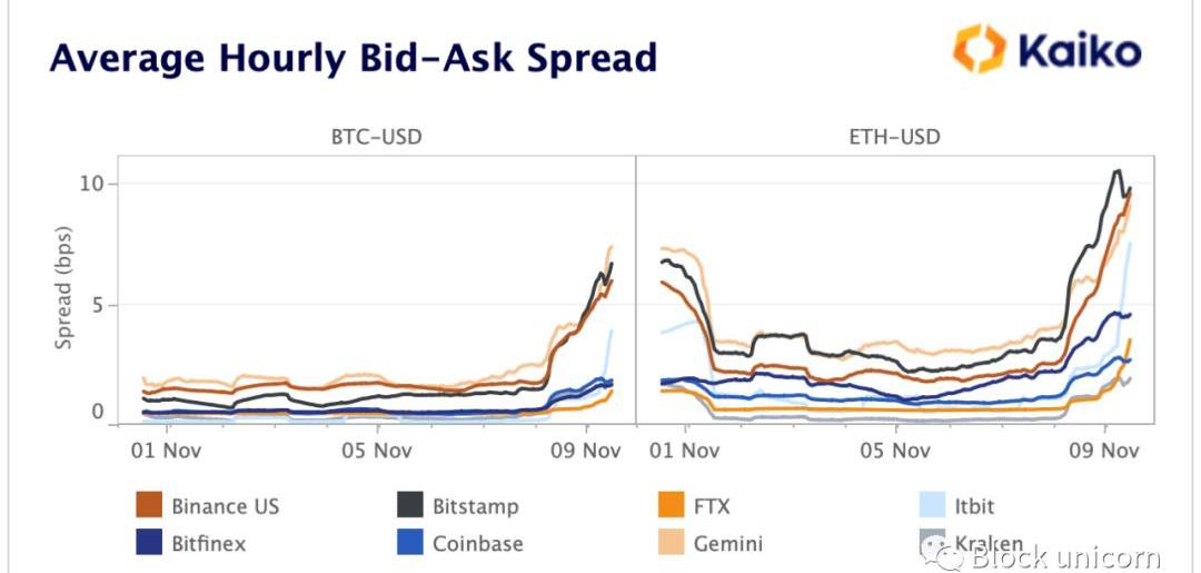 BTC和ETH在每一個交易所的價差都處于年度高點,這表明在極端的波動中,所有的做市商都對價格極度敏感。