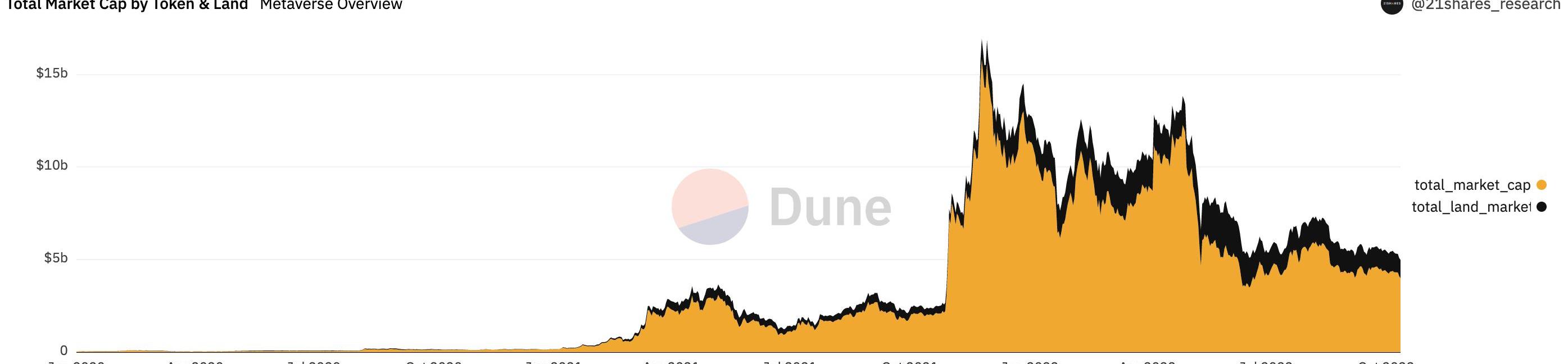 21Shares建立了一個Dune儀表板,以追蹤3個最大的元宇宙項目在Web3市場發展趨勢。
