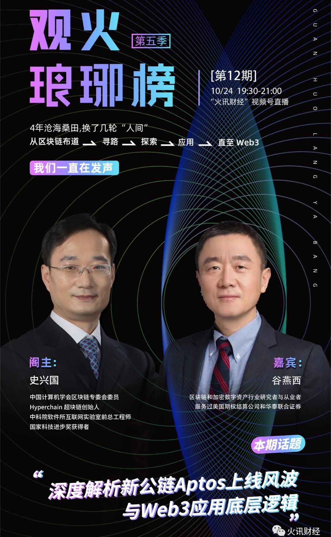 XRP/HKD+0.24%10月24日晚,觀火瑯琊榜第五季第十二期播出,閣主史興國先生在本期的訪談嘉賓是谷燕西。兩位大咖深度解析了新公鏈Aptos上線風波與Web3應用底層邏輯,以及香港競爭國際虛擬資產交易中心等熱點話題。