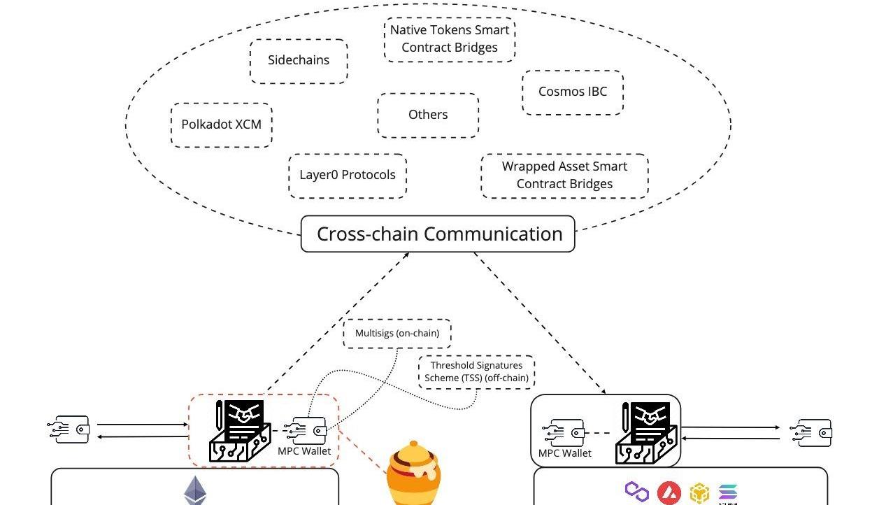 即使跨鏈通信可以從技術角度變得完全安全,但跨鏈橋接的最終挑戰仍然在于多簽錢包的限制。用于分散錢包控制權的最流行的技術是多簽和TSS,它們只能有效地將資產池的控制權分配到兩位數的參與方,而不會對橋接的安全性能產生實質上躍遷。
