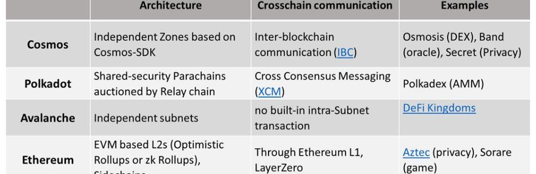 Cosmos和Polkadot等生態系統上的應用程序構建者基本上都被要求將他們的應用程序構建為應用鏈。這兩個協議都致力于構建由多個相互連接的鏈組成的生態系統。兩個生態系統中的主鏈都沒有實施支持智能合約的執行引擎。因此,要構建任何應用程序,可能的方法要么是構建應用鏈,要么是使用實施通用計算執行引擎的鏈。