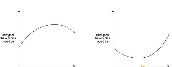 如果一個決定是凹的,我們寧愿妥協,如果它是凸的,我們寧愿擲硬幣。通常,與我們回答A與B本身的一階問題相比,我們可以更容易地回答妥協或拋硬幣是否更好的高階問題。