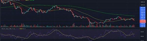 在過去24小時內,該代幣貶值了2%,而在上周,以太坊注意到了17%的跌幅。目前,ETH橫盤整理,價格變化很小。