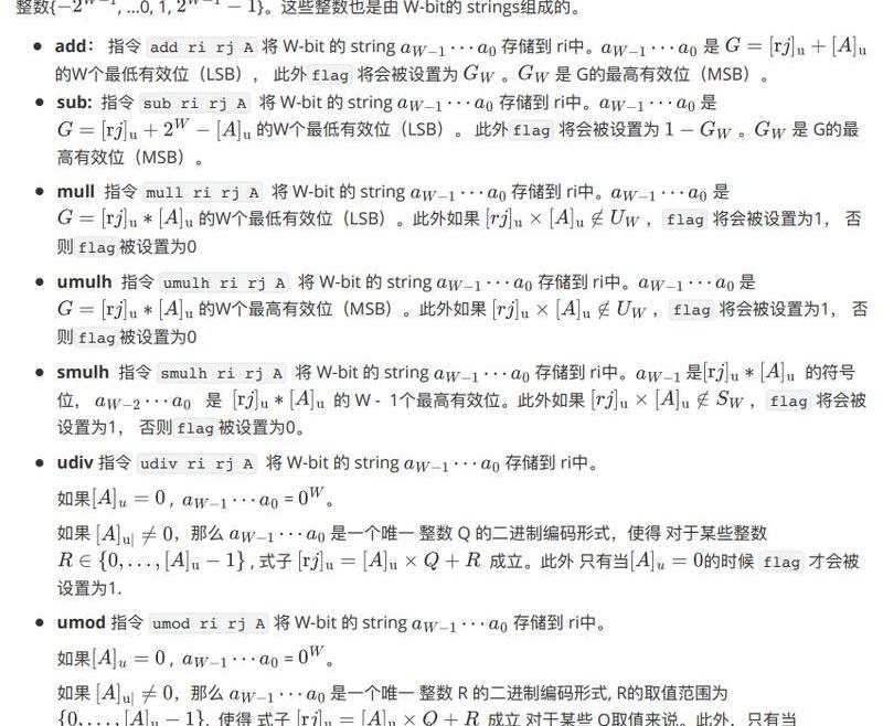 這些是各種無符號和有符號的整數操作。在每種情況下,如果發生算術溢出或錯誤,flag被設置為1,否則被設置為0。