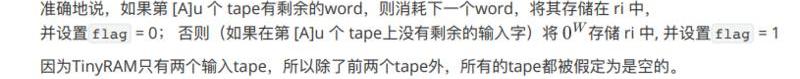 該指令是唯一一個訪問兩個tapes中的任意一個的指令。第0個tape用于primary輸入,第1個tape用戶auxiliary輸入。