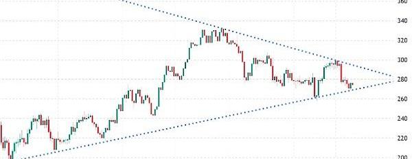 XRP/HKD-3.01%幣安BNB鏈的原生代幣BNB于8月10日進入對稱三角形形態,當時它首次面臨335美元阻力位的下降趨勢線。接下來的五周一直在280美元左右掙扎,這是兩種相互沖突的上升和下降模式之間的確切交點