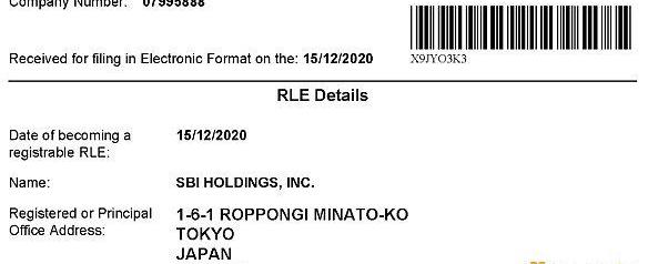 2020年12月,B2C2向CompanyHouse.UK提交實控人變更資料,SBIHoldings,Inc以擁有超過75%的股權成為B2C2實控人;