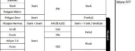 這些區塊鏈通過使用不同的證明系統來權衡證明大小、驗證時間、可信設置等特性。例如,Plonk生成的證明具有恒定的證明大小和驗證時間,但仍需要通用的可信設置。相比之下,Stark不需要可信設置,但其證明大小和驗證時間欠佳,并且會隨著環路大小而增加。其他系統也各有利弊。在這些證明系統間進行權衡結果將導致計算量的“重心”發生變化。