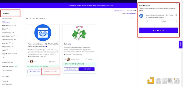 搜索「Gitcoin」,拉到下面找到「Grants」,點擊進入Grants頁面。
