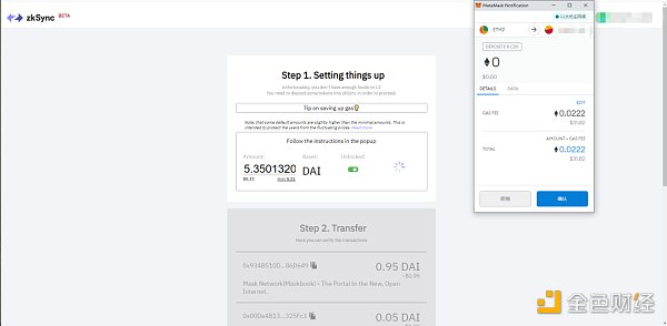 點擊「Proceed」開通,會跳轉到zkSync的頁面,再次連接Metamask錢包