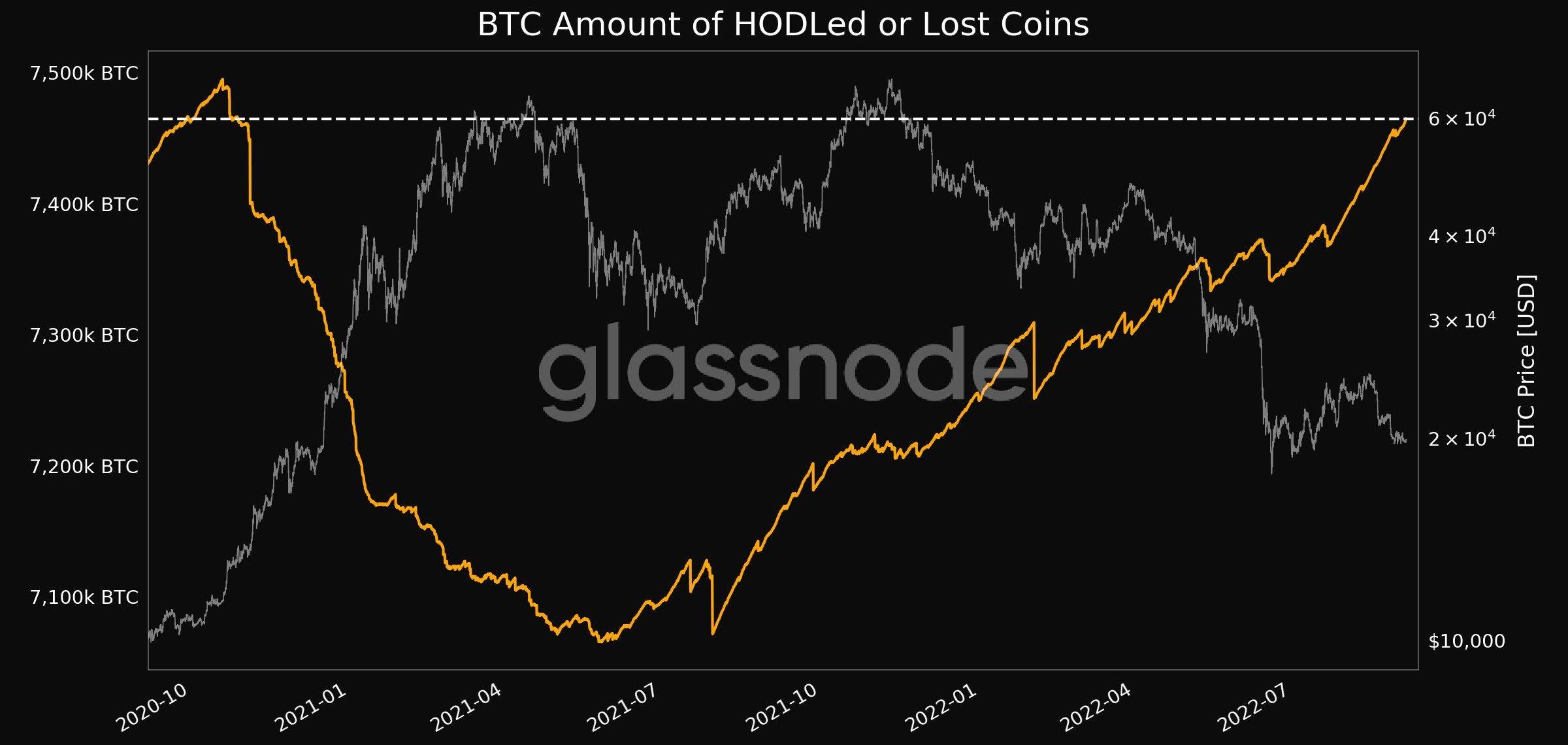 被持有或丟失的比特幣數量圖表來源:Glassnode/推特
