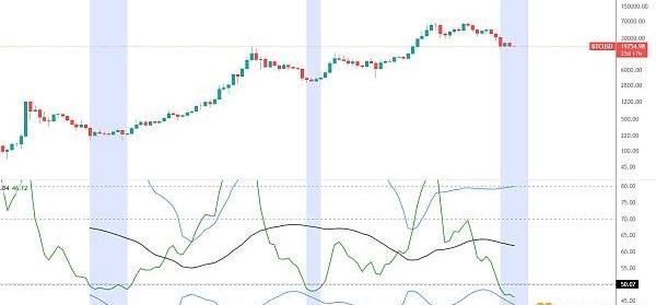 上方為BTC周線走勢,可以發現上方50周線即將向下死叉100周線,上一次兩線死叉還是在2018-2019熊市底部區域,再上一次死叉在2014-2015熊市底部,后面經過一段時間的低位盤整,筑底后啟動牛市行情,并且可以看到下方長期趨勢支撐線并未跌破,前期熊市也未破過,不破就有再次筑底走牛的機會,不破依舊可以考慮逢低布局,下方趨勢支撐17800-18000.