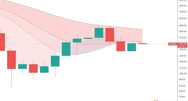 ETH上周反彈并未能重新站回,短期上方繼續關注1610和1650壓力。