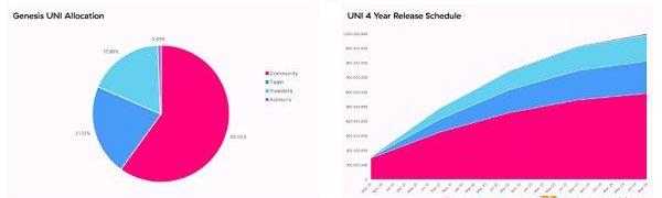 10億枚UNI將會在4年內釋放完畢,代幣分配計劃如下: