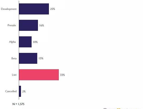 并且,現在僅僅只有33%的GameFi項目可玩,65%的仍在開發中。