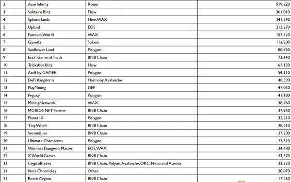 重要提示:這是一個我們需要考慮的多方面的變量,包括深入的游戲性和設計。因此,我們看到游戲代幣排名與游戲項目DAA排名之間存在差異。除DAA之外,任何指標,包括DAU/MAU/Retention指標都是非常不透明的。