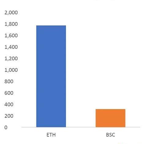 盡管目前ETH的市值較小,但在市值加權的基礎上,其發行量卻大了約3倍,大規模的發行也使得ETH的市值很難超過比特幣。市值是已發行代幣和代幣價格的乘積。