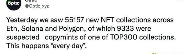 隨著NFT越來越流行,藏品數量增長,欺詐的可能性也在增加。圖片來源:Optic