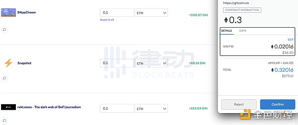 仍然向三個項目捐贈 0.3 個 ETH,需要支付 0.61 美元的 Gas 費,每次轉賬約為 0.2 美元。